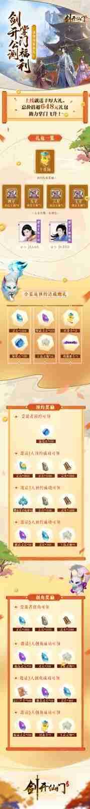 游戏为大家准备了海量的福利,,,包括上线即可获得的全渠道预约礼包、、十连抽等福利,,,,输入密令“JK666”、、、、“JK888”即可领取紫色弟子,,,达到金丹期后还有功法宝箱可领,,,助力全宗上下实力提升……所有奖励总价值超过648元,,而邀请好友一起体验,,更可以获得额外的奖励哦~