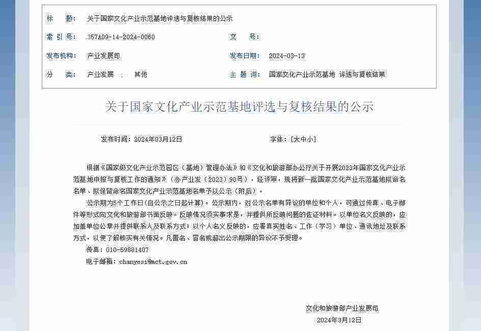 新一批国家文化产业示范基地公示,,,,赏金大对决成功入围