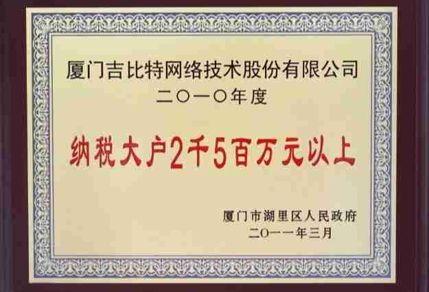 赏金大对决荣获2010年厦门市湖里区纳税大户称号